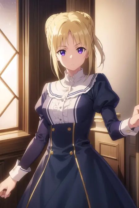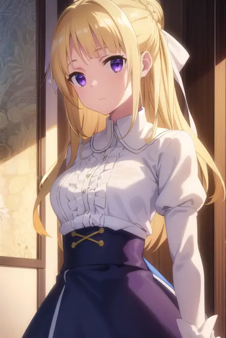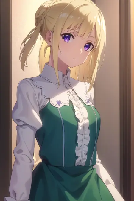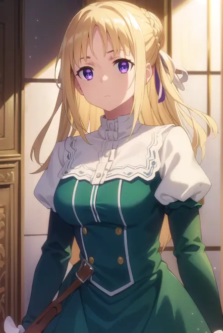 ortfine fredericka von eylstadt, 긴 머리, 금발, (보라색 눈:1.1), 땋은 머리, 머리묶음, 단일 머리묶음,