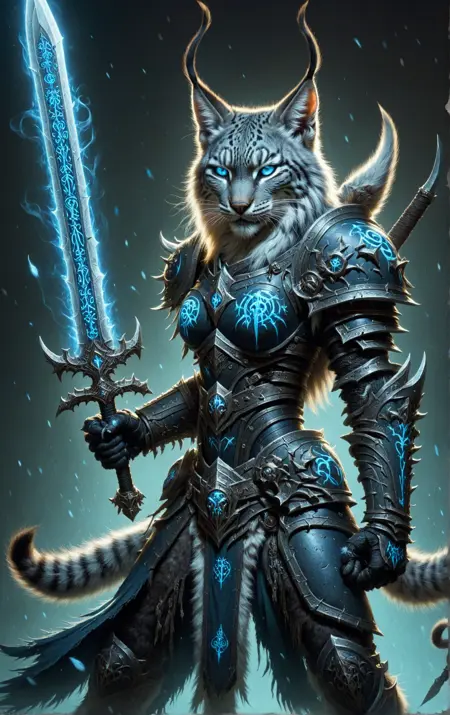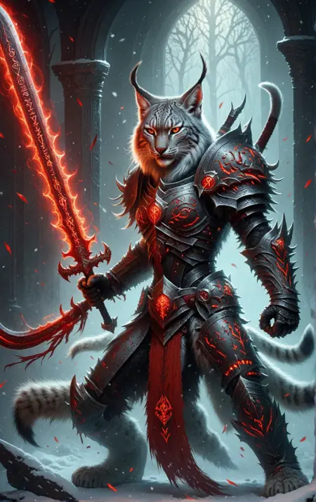 尝试任何符文之刃、长剑、双手剑、阔剑、巨型等关键词,搭配相关色彩触发词,获得更丰富的效果。 :)