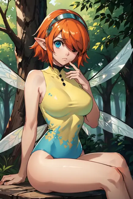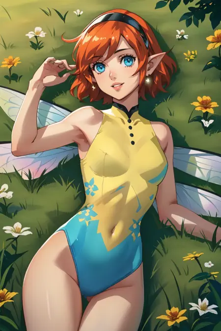 Default Appearance: gallicamr, short hair, hairband, pointy ears, fairy wings, leotard