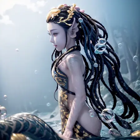 美人魚の全身画像は模糊としたトレーニング用画像しかなく、完全な全身像を生成するのは難しいです。必要に応じて、ダウンロードしてより多くの画像を生成してみてください。あなたが求めている水中の美人魚の全身像が見つかるかもしれません。