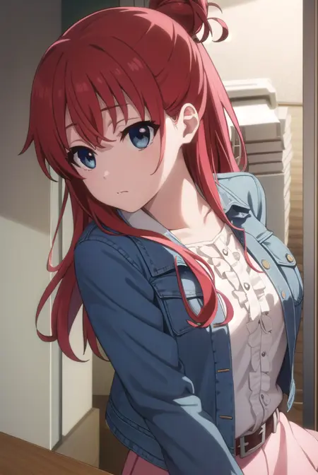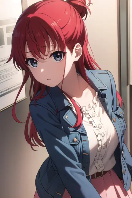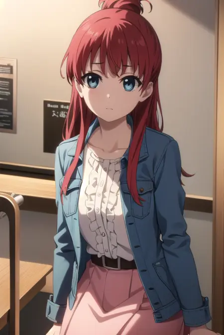 shizuka sakaki,长发,蓝眼睛,红发,发髻,单发髻,