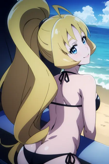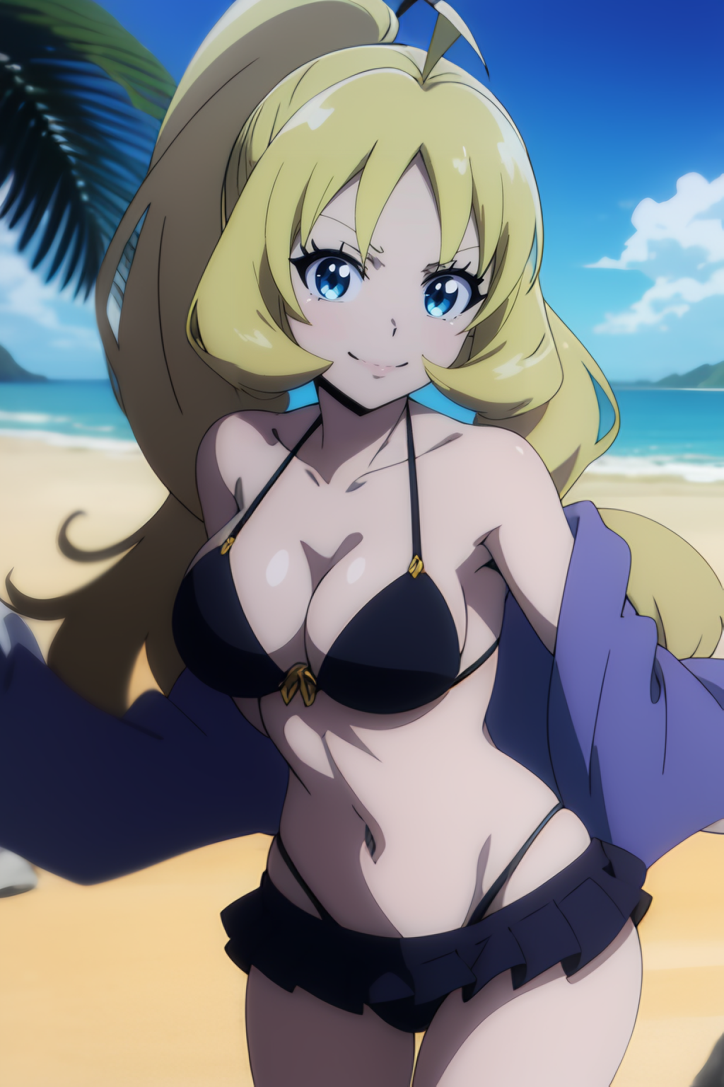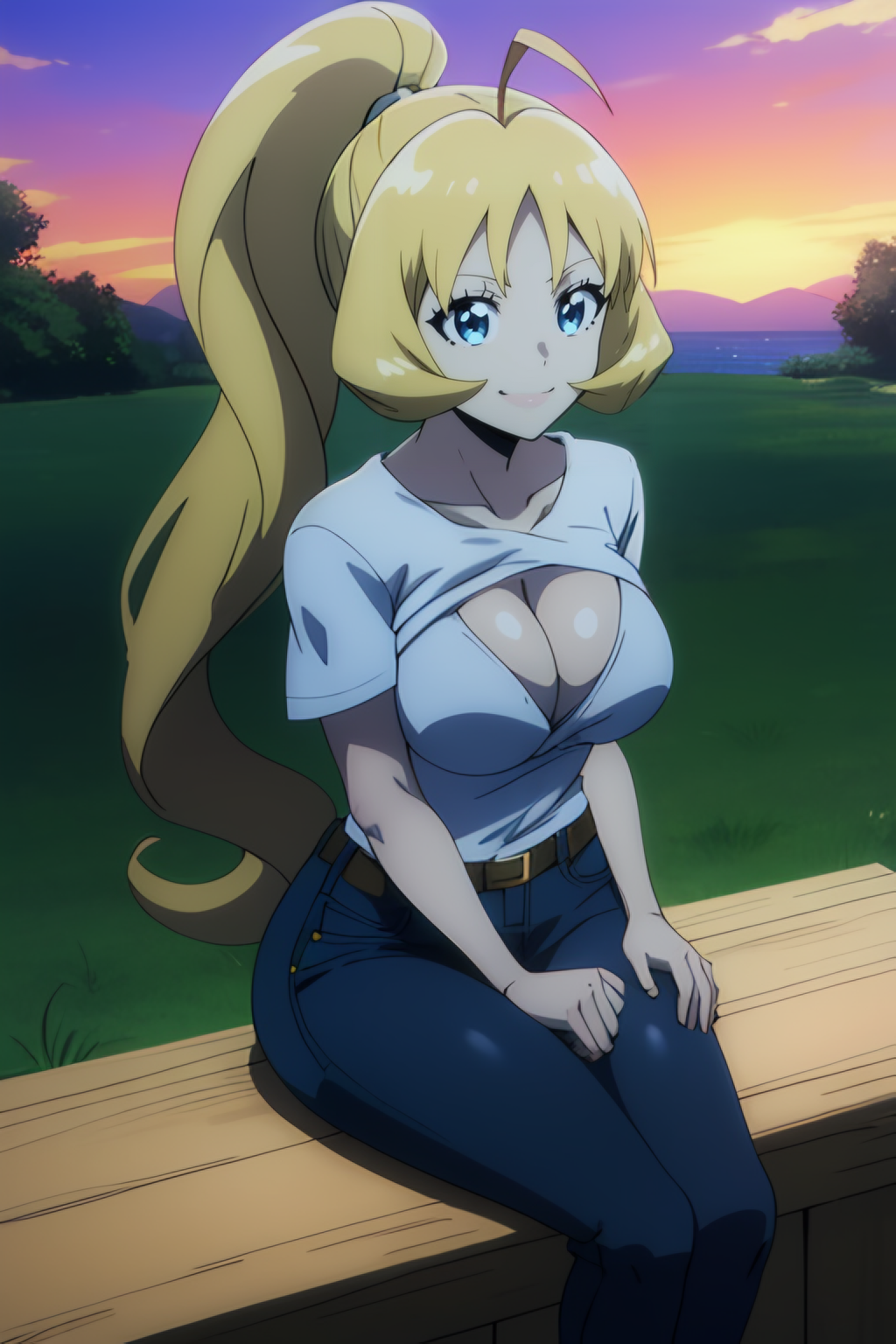 The model might be a bit dark, because she only appears during nighttime and sunset in the anime. Use the word sunset to partially offset the darkness .