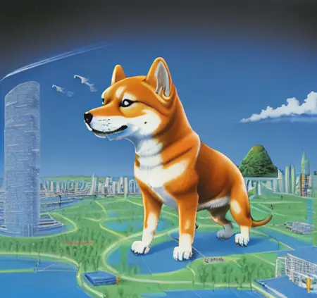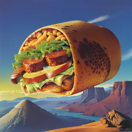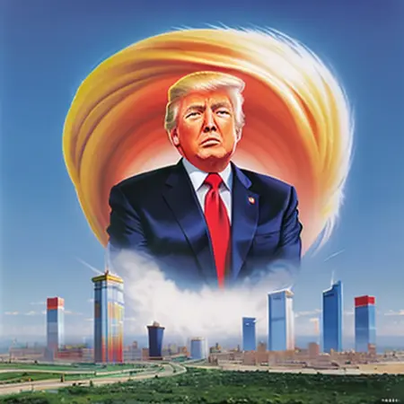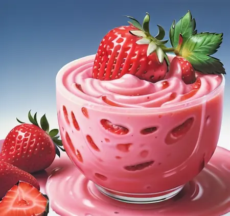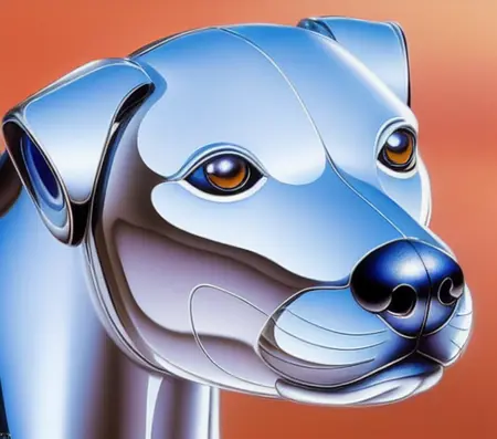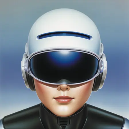 70~80년대 일러스트레이션 감성, 떠 있는 물체와 크롬 텍스처를 특징으로 함.