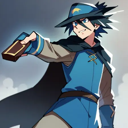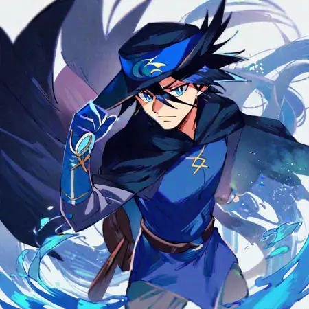 1boy, black hair, blue eyes, spiked hair, hair between eyes