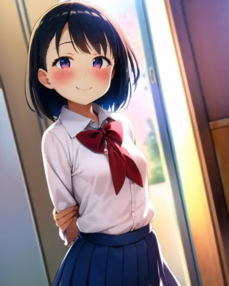Because there are many images of smiling characters with squinting eyes, it is easy to generate half-closed eyes&smile-like images(in v1, I did not adjust the tags, so I don't know if I can control it with prompts). very naughty.