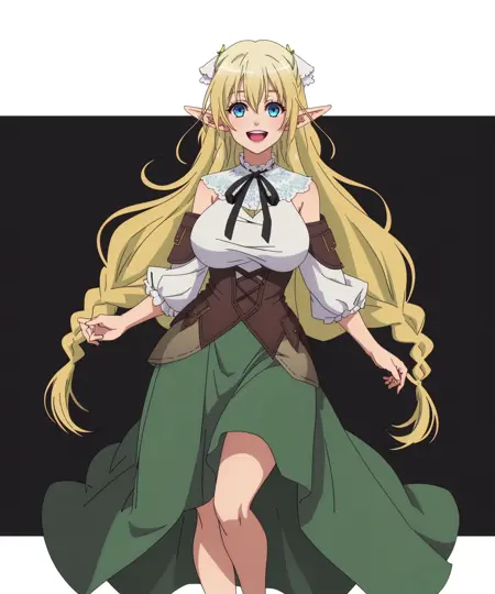 이것은 고등학교 천재들 LoRA의 Lyrule(Lilulu)입니다. Lyrule(Lilulu)는 애니메이션 고등학교 천재들에서 온 엘프 마법사입니다.