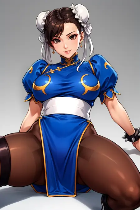 ✦ The main trigger words is 1girl, blue dress, boots, bracelet, breasts, brown eyes, brown hair, brown legwear, bun cover, china dress, chinese clothes, cross-laced footwear, double bun, dress, earrings, fighting stance, full body, jewelry, knee boots, lace-up boots, pantyhose, pelvic curtain, puffy short sleeves, sash, solo, spiked bracelet, spikes, standing, white footwear