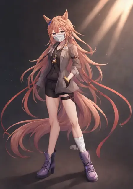 1girl,masked_sankanba,(umamusume),horse tail,horse ears, surgical mask