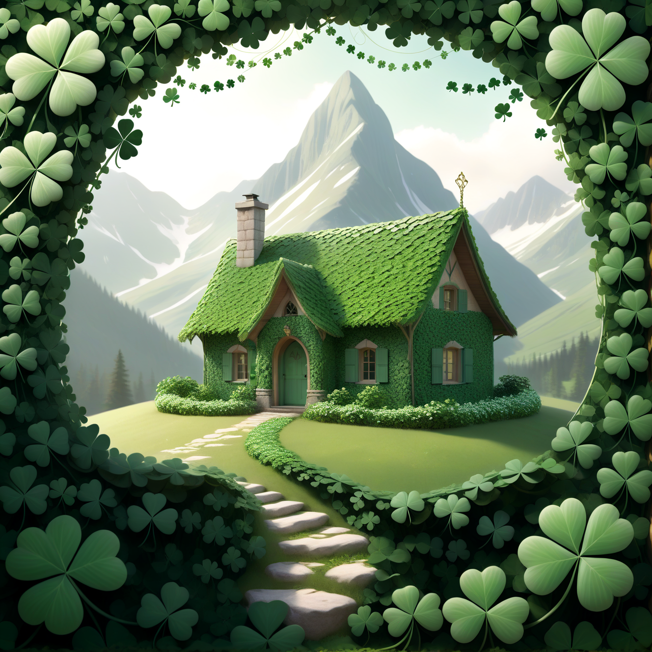 (whatever you want) made of HUD_shmrck, delicate shamrock clover leaves intricately woven together