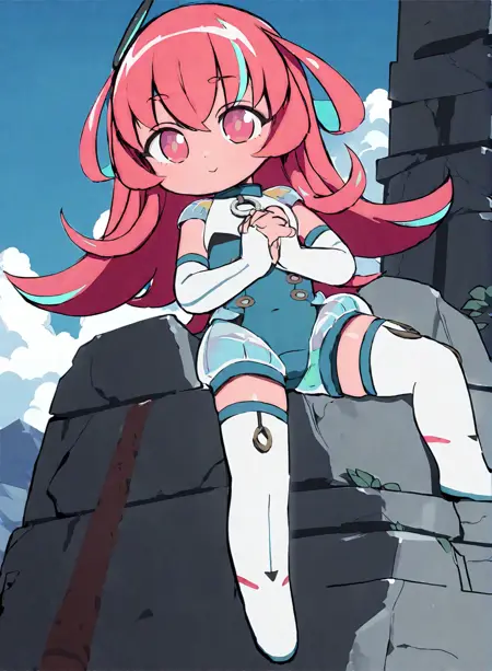 触发词:chibi,pink hair,pink eyes,thighhighs