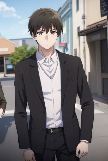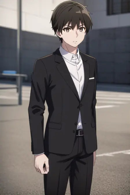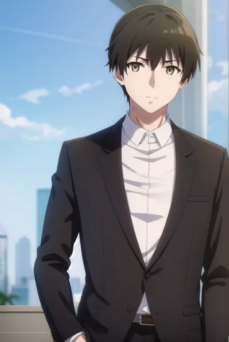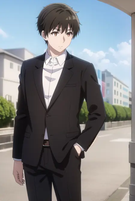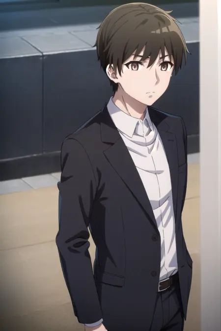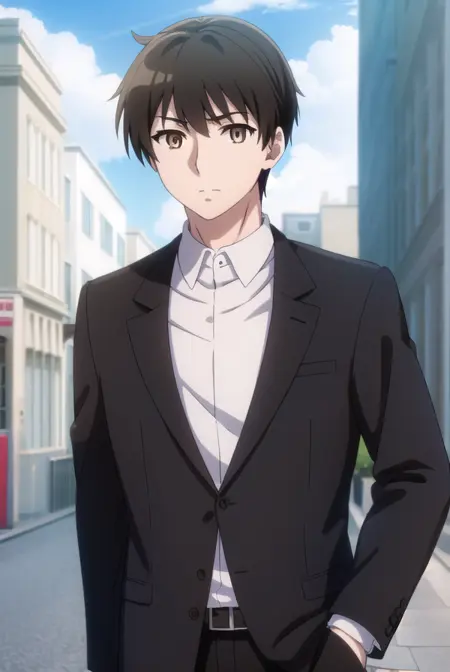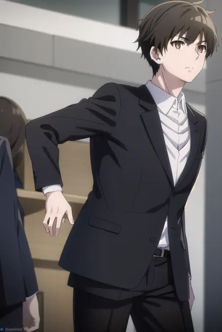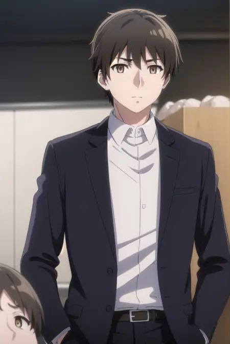 kimihiko kimizuka, short hair, brown hair, black hair, (brown eyes:1.5), male focus,
