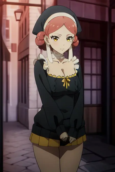 Since she only appears very shortly in the anime, so there are less images to train this lora with, so it doesn't adapt to changing clothes as well as the other more prominent characters. The quality might also be slightly lower than the others.