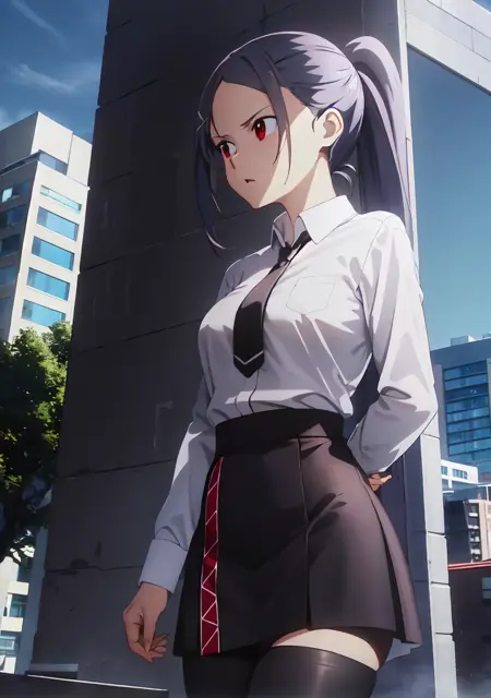 trigger words: long hair, high pony tail, hair ornament,bangs,