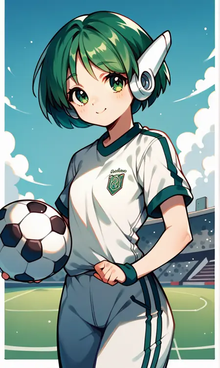 multi \(to heart\), 1girl, solo, green hair, robot ears, serafuku, red skirt, thighhighs, red sailor collar, long sleeves, red bowtie