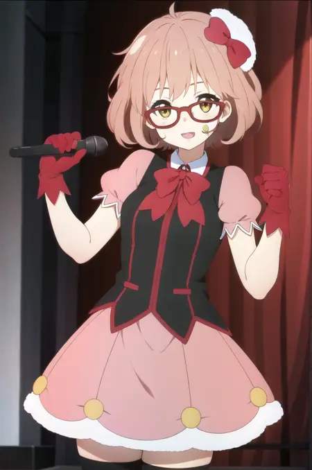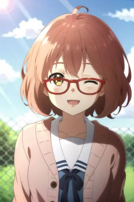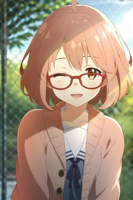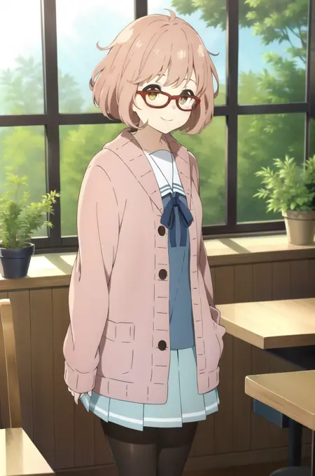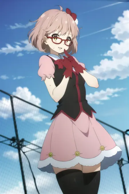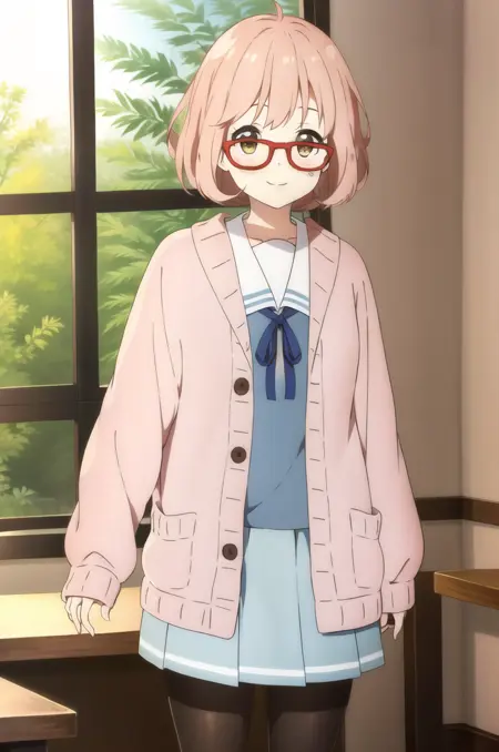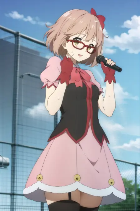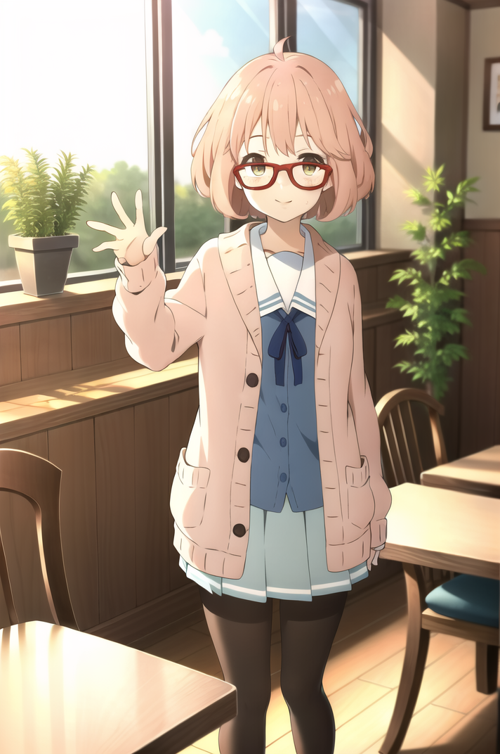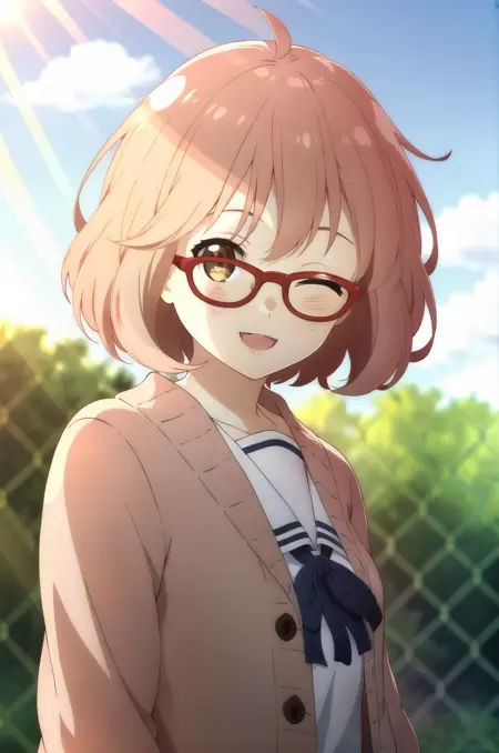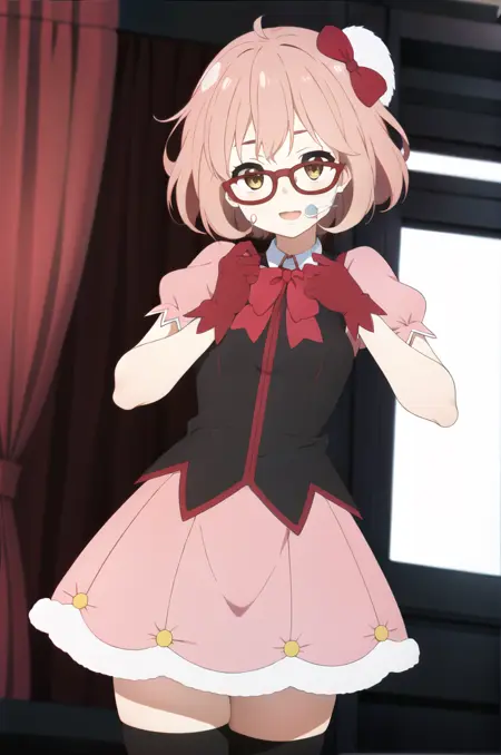 <lora:KuriyamaMirai-v3-06:0.6>, ChopioKuriyamaMirai, short hair, pink hair, bob cut, ahoge, brown eyes, red-framed eyewear, (looking at viewer:1.3),