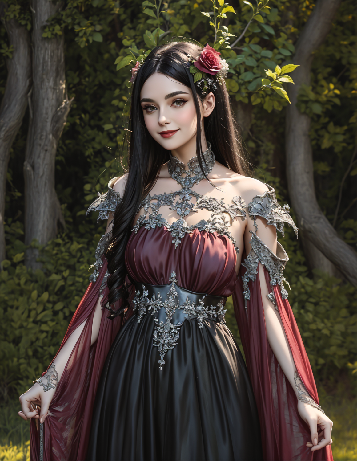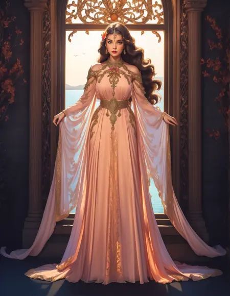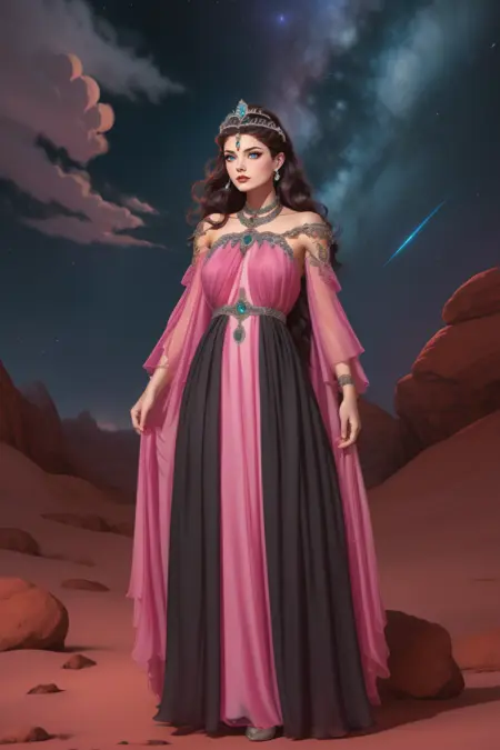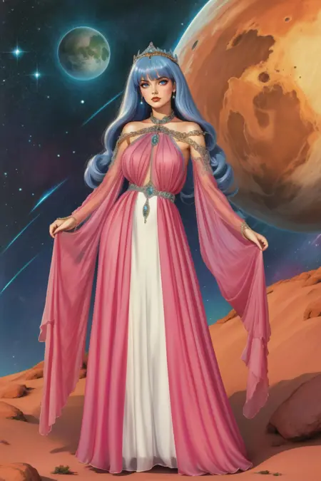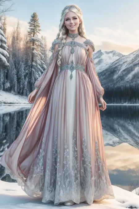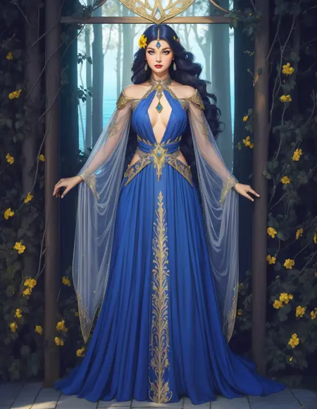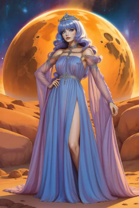 This lora will create a chiffon gown with ornate neck/chest piece and shoulder pauldrons. This will make all kinds of colors and diff gowns at diff strengths so experiment if ya wanna have some fun!