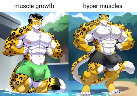 This model has the same basic principles as my base inflation model but trained on all male character images. The other inflation model -can- be used with male characters but I noticed a lot of female traits sneak in and it's difficult with more male shapes like muscles and bulges so here we are. I generally train on models that take e621 tags pretty well so keep that in mind when using this lora.