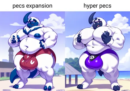 Things unique to this would be tags like blimpdick, or blimpballs for when hyper isn't big enough. Also muscle growth and pecs expansion, for those specific areas. I plan on working with this alongside my inflation lora from now on so things should get better as I add more training data.