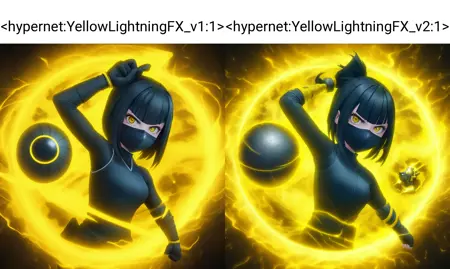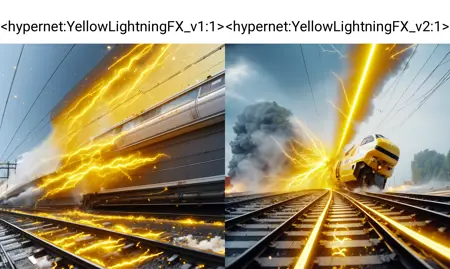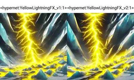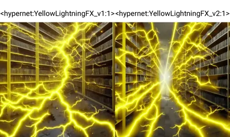 A Yellow Lightning effect, such as from special effects, spells, magic attacks, etc. Trained on deliberate_v5 model, but others can work as well if you're willing to experiment.