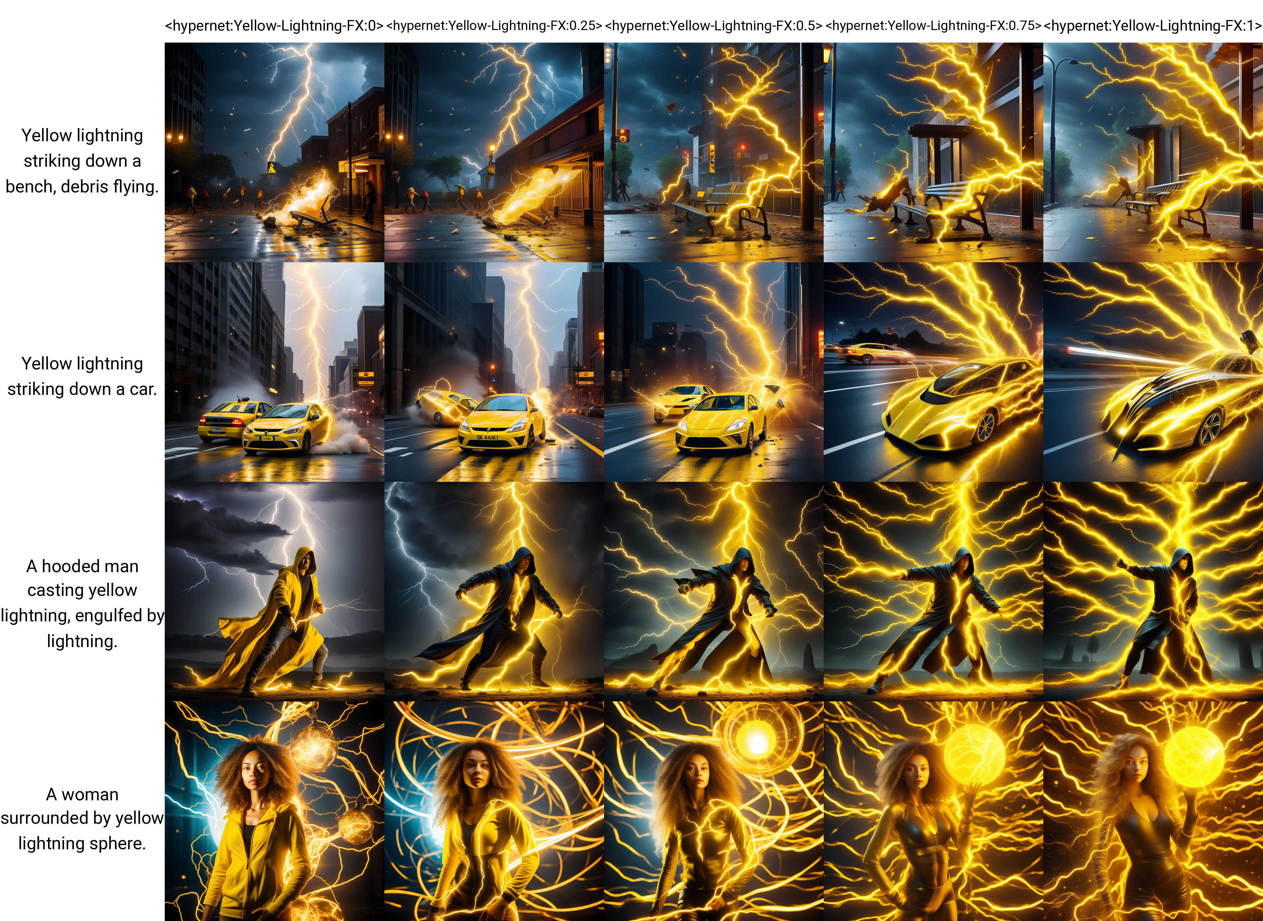 The prompt should include at least "yellow lightning" somewhere in it.