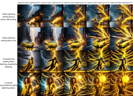 A Yellow Lightning effect, such as from special effects, spells, magic attacks, etc. Trained on deliberate_v5 model, but others can work as well if you're willing to experiment.