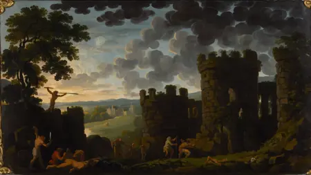 George Barret Sr. was an Irish landscape artist known for his oil paintings and watercolours. He left Ireland in 1762 to establish himself as an artist in London and quickly gained recognition to become a leading artist of the period. He exhibited at the Society of Artists of Great Britain and was able to gain patronage from many leading art collectors. Barrett with other leading members left the Society in 1768 to found the Royal Academy, where he continued to exhibit until 1782.[1]