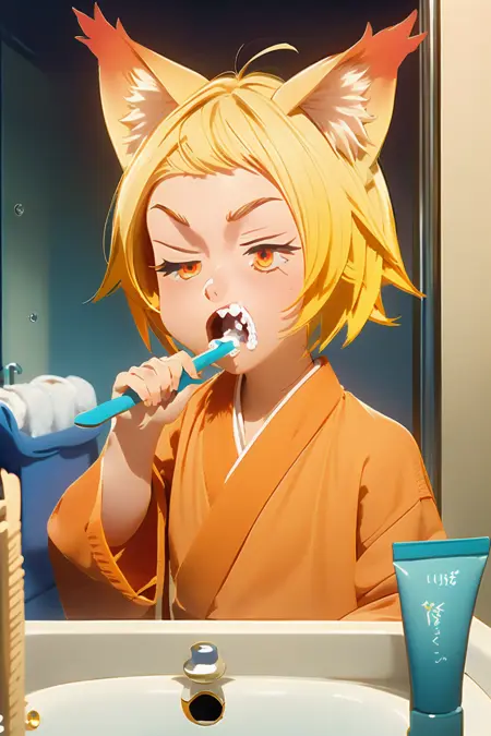 タグを使用してください - brushesteeth, holding, toothbrush, bathroom, mirror, sleepy, reflection,