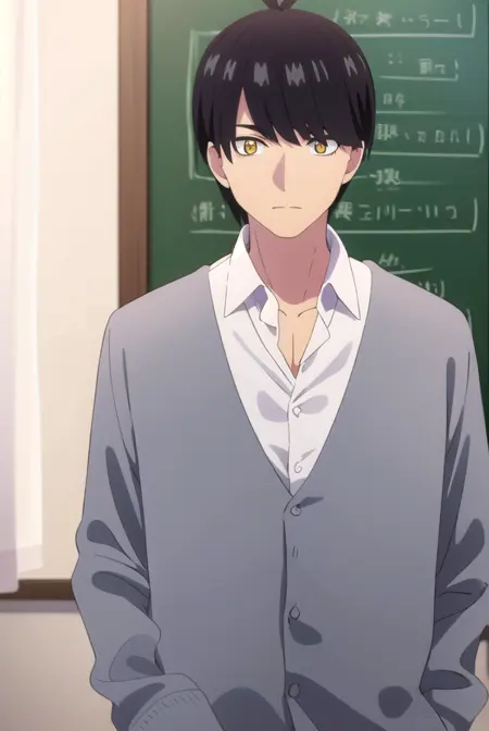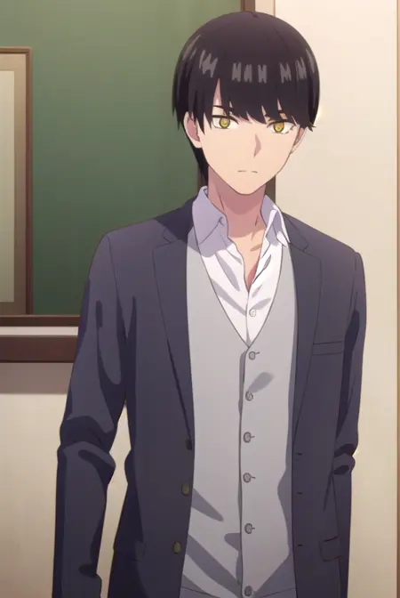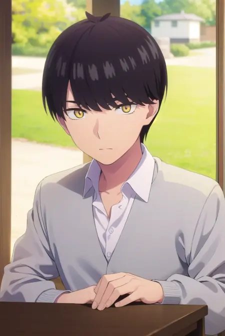 fuutarou uesugi, 黒髪, (黄色い目:1.3), 男性焦点,