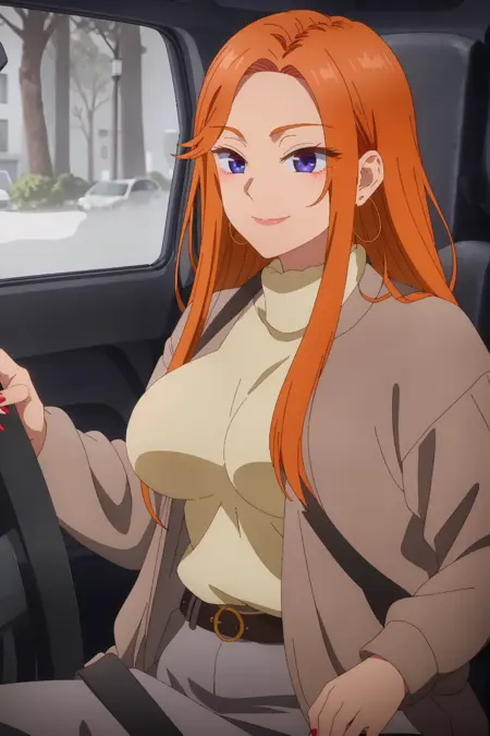 belt, jacket, white sweater, lipstick, grey jacket, jewelry, shirt, turtleneck sweater