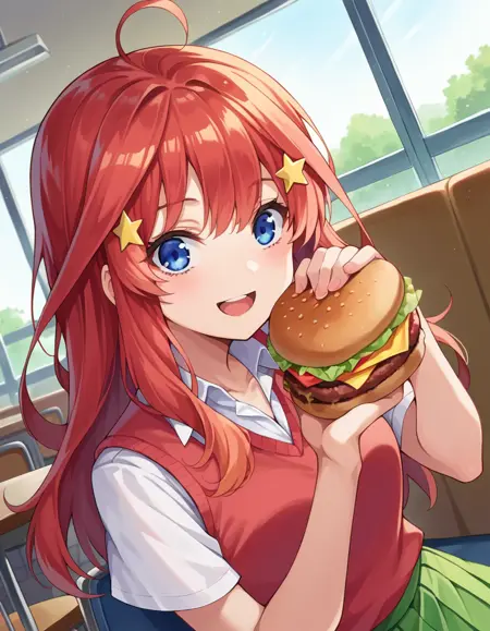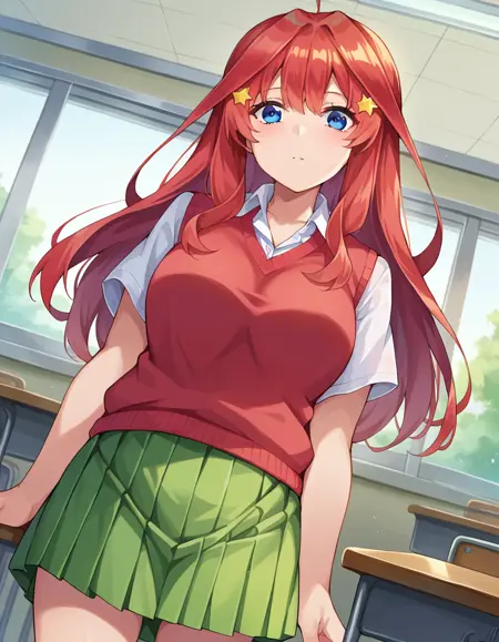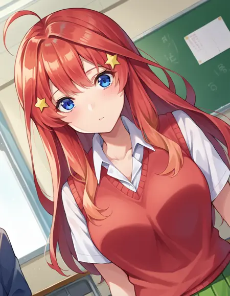 itsuki nakano, 前髪, 青い目, 目の間に髪, アホ毛, 赤髪, 星\(記号\), 髪飾り, 星の髪飾り,