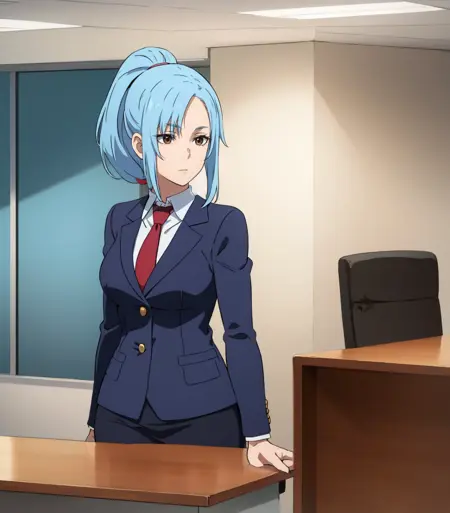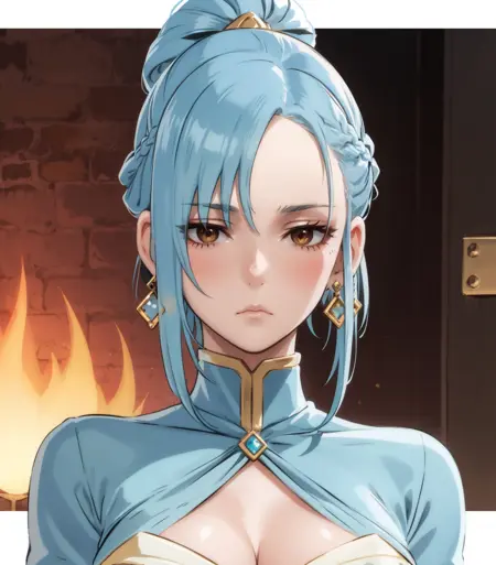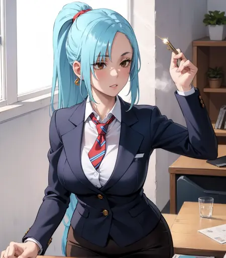 skcoolsan,mature female,lightblue hair,brown eyes,long hair