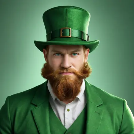 追加:帽子、緑色、ひげ、オレンジ色、三葉草、葉、四葉のクローバー