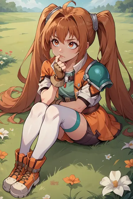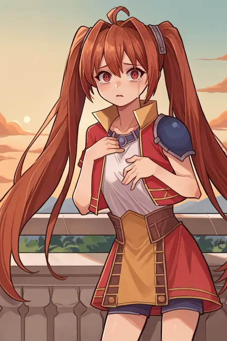 来自《空之轨迹》/《轨迹系列》的埃斯特尔·布莱特。在 Pony Diffusion V6 XL 上训练。测试强度为 0.8-1.0。