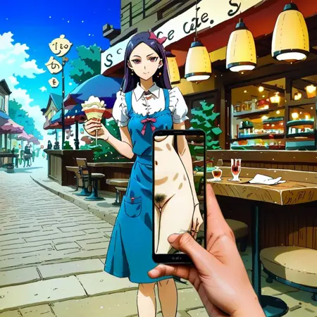 Kind of silly, but the concept behind this LoRA is that you have a magic phone that shows you people without their clothes on.