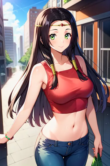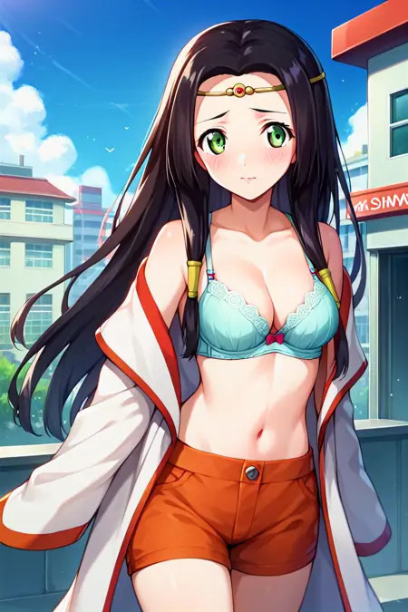 触发词: sumeragi kaguya, black hair, green eyes, long hair, circlet, hair tubes,