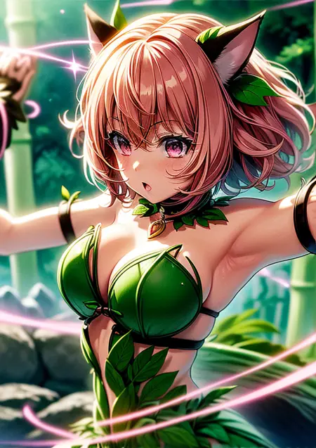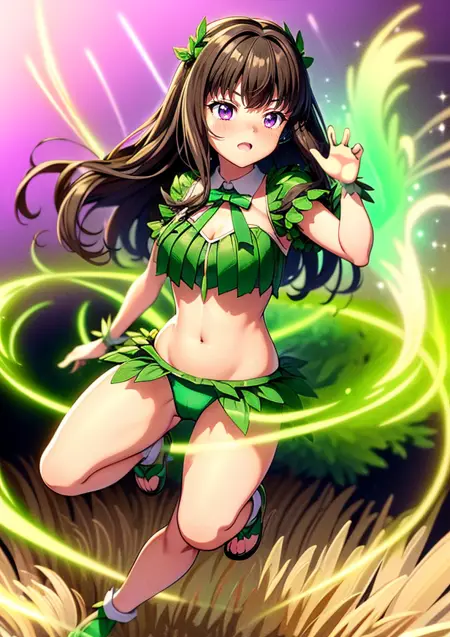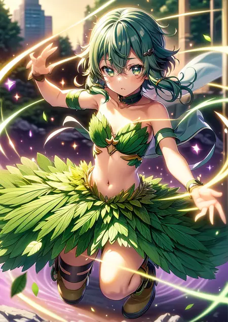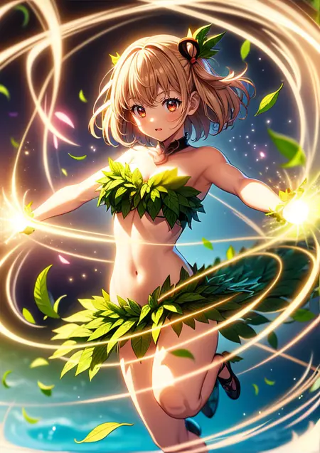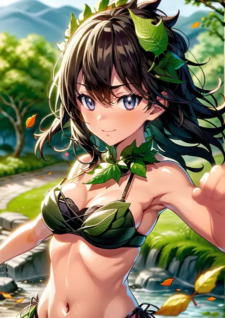 I create LoRa to generate person who wearing leaf bikini or leaf bikini armor with leaf hair ornament.