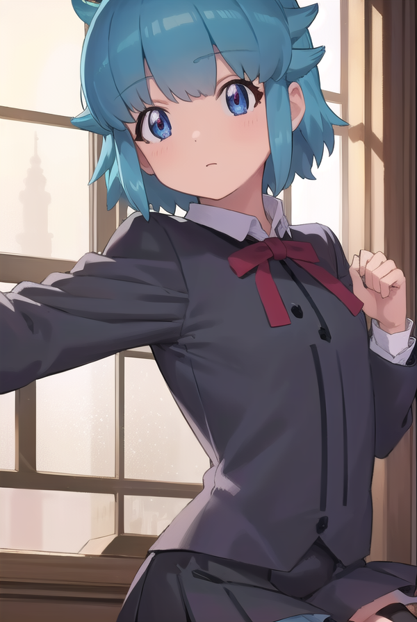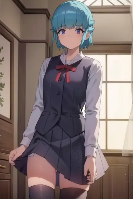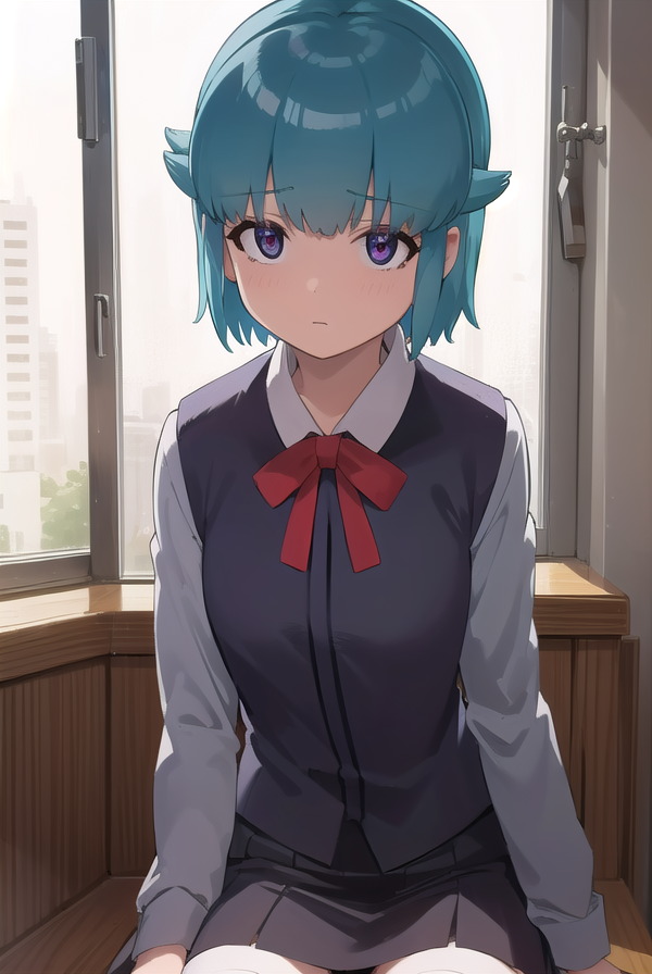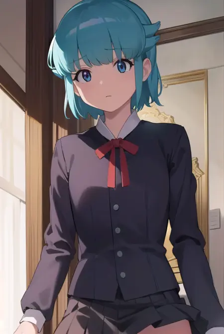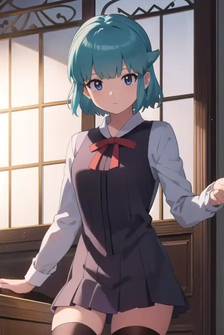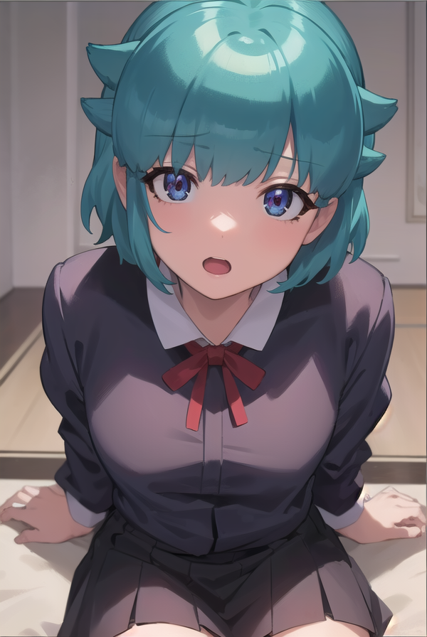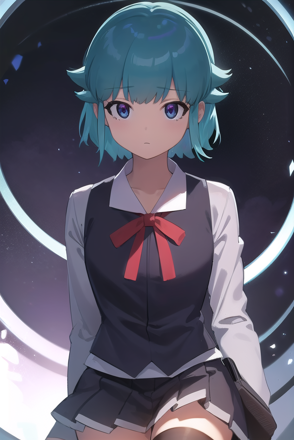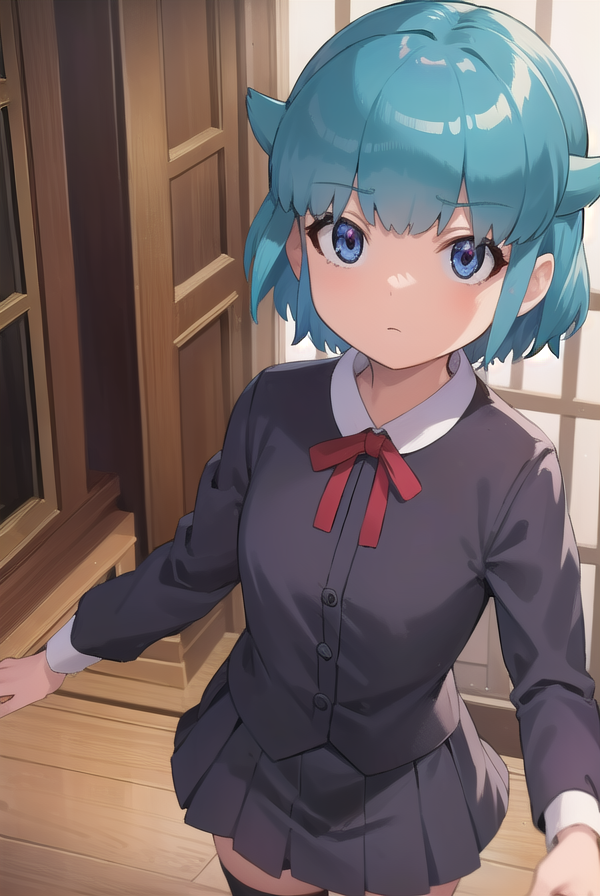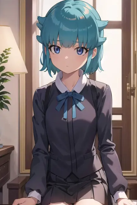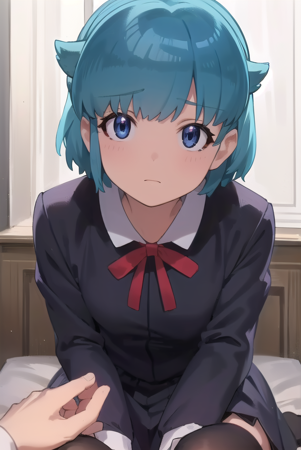 momoka nishizawa, short hair, bangs, blue hair, blue eyes,