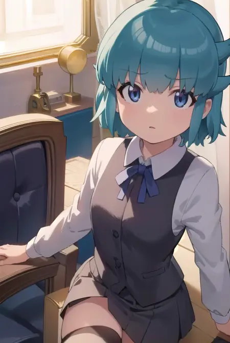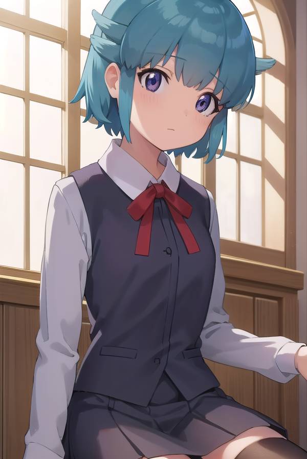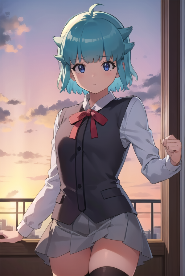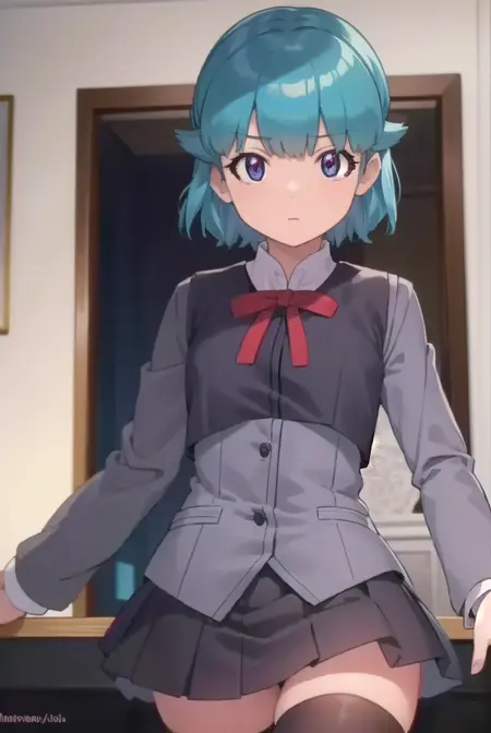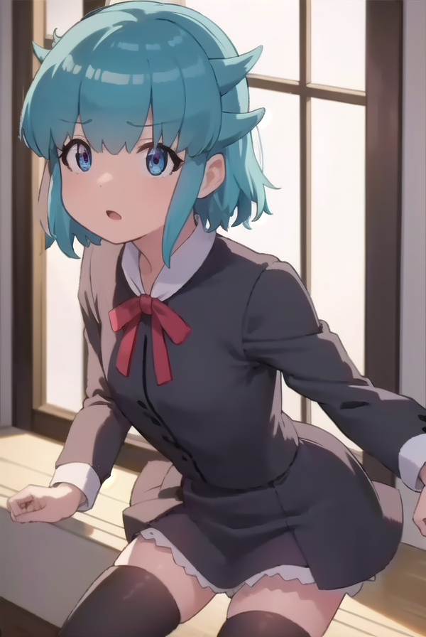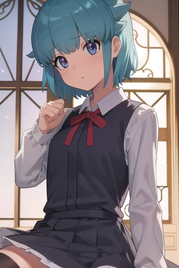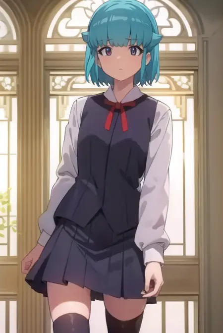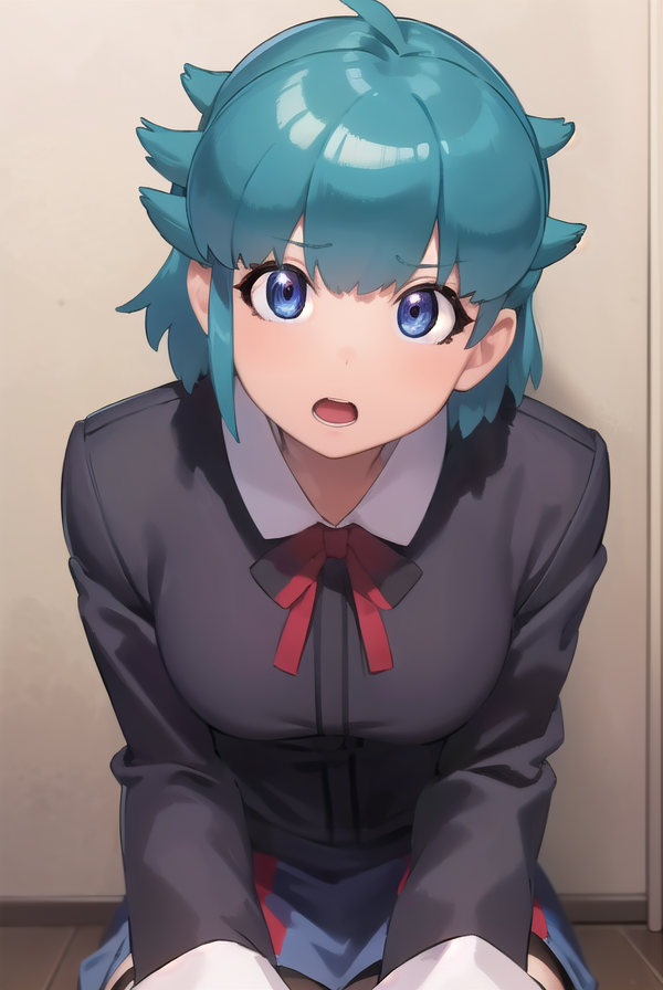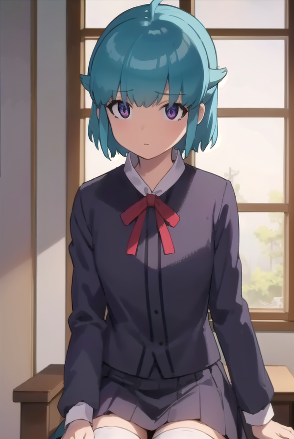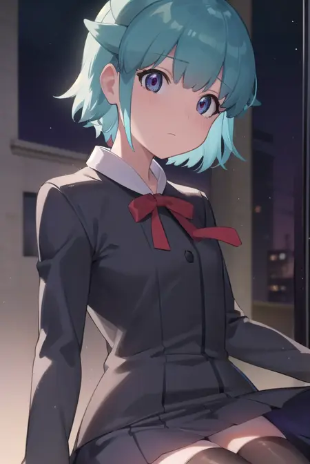 momoka nishizawa, short hair, bangs, blue hair, blue eyes,