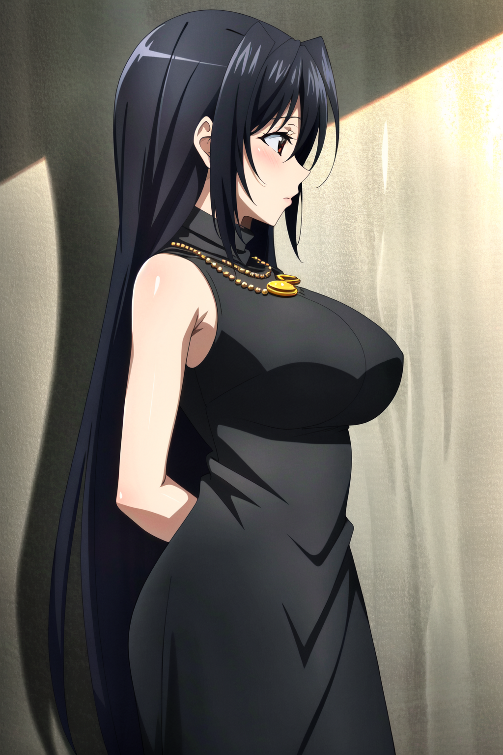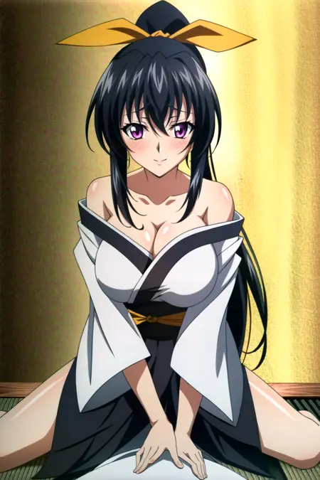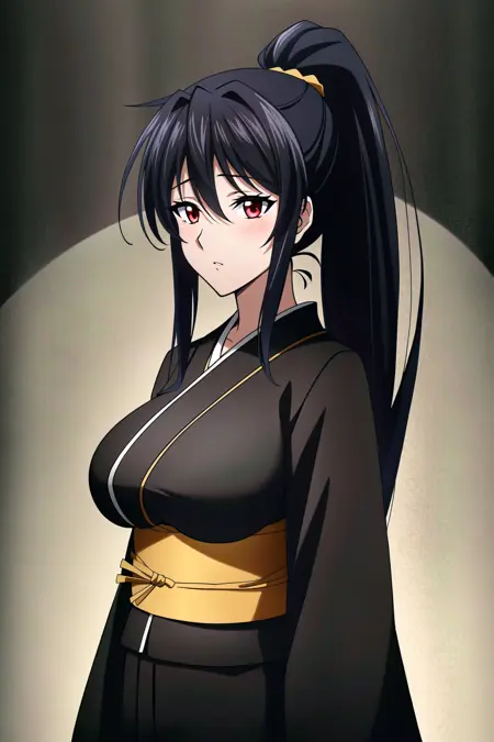 Akeno Himejima, japanese clothes, long hair, black hair, kimono, very long hair, ponytail, obi, sash