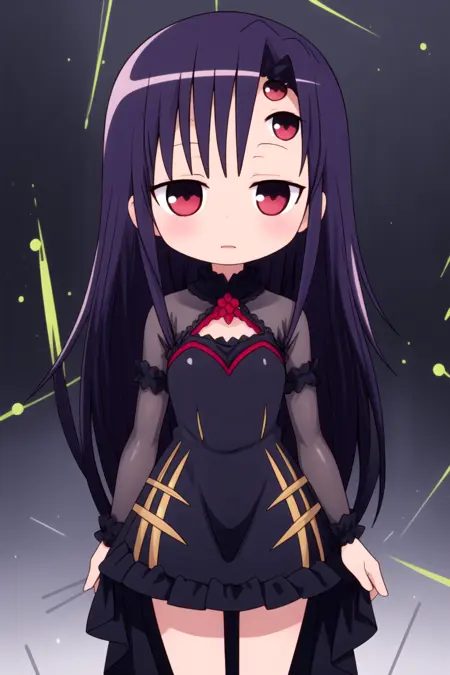 Example prompt: 1girl, black_hair, red_eyes, lora:DriderEyeV3:0.99 (drider_eyes:1.3), (extra_eyes:1.1), black_dress, short_hair, forehead