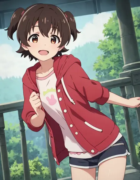 角色提示:akagi miria,棕色眼睛,两侧向上梳,短发,黑发
