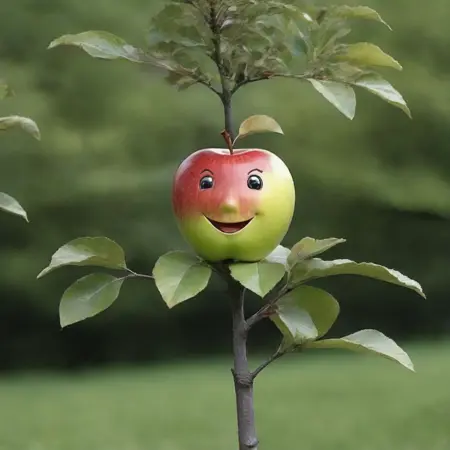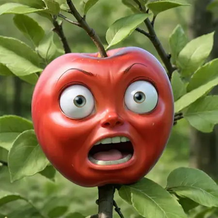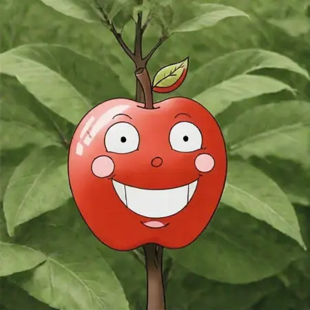 (surprise apple),最佳画质,高画质,高分辨率,杰作,户外,树木,树叶,微笑。