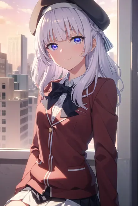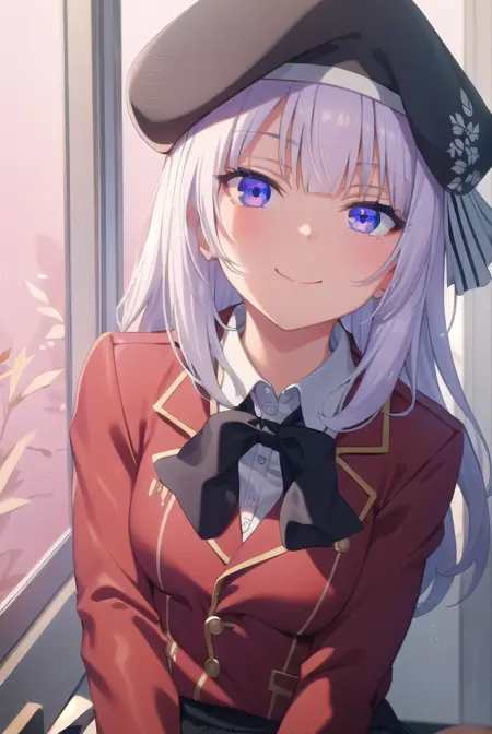 arisu sakayanagi, long hair, bangs, (purple eyes:1.1), white hair, blunt bangs,