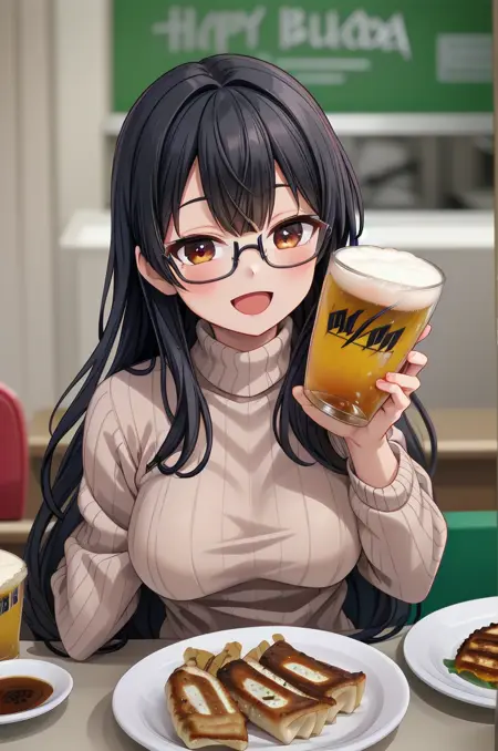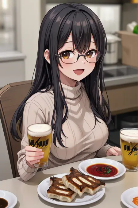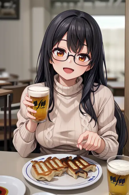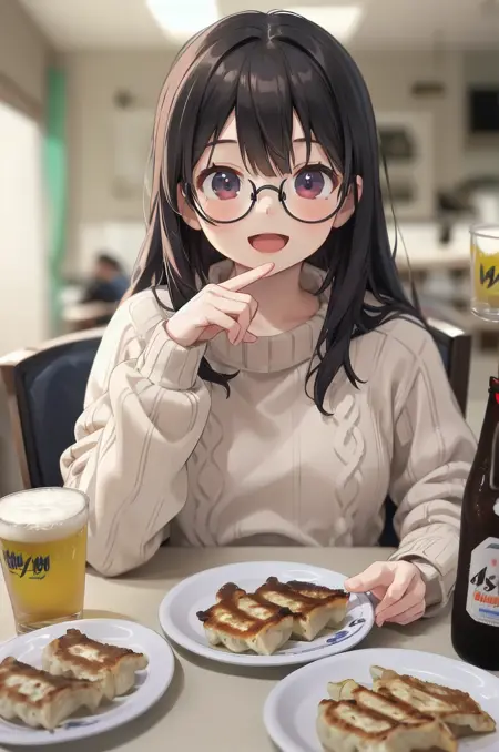 这是可能能够描绘出之前提到的“最美味饺子餐厅”的饺子和啤酒的LoRA。