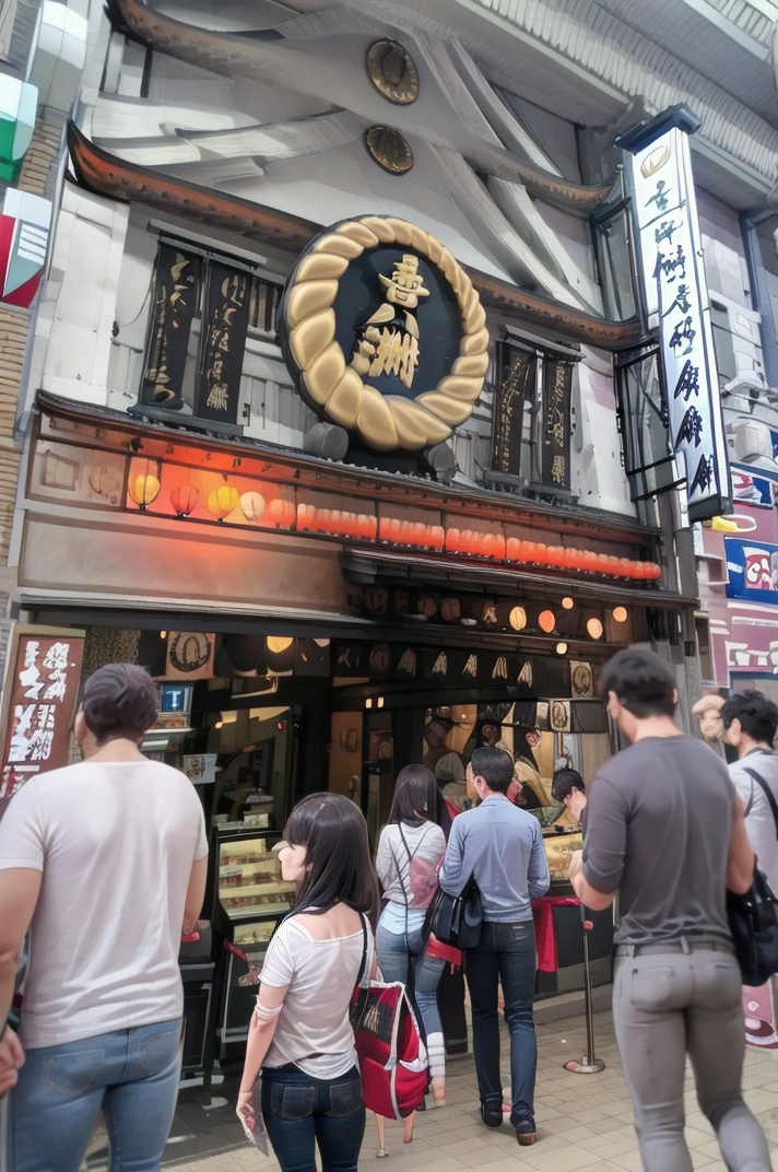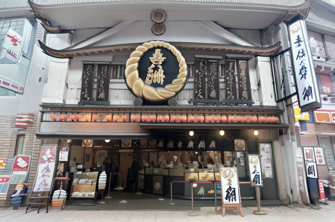 long-established Japanese sweets store in Juso, Osaka. Mitarashi dango is very popular. これはで大阪十三にある老舗和菓子店の風景を描くことができるかもしれないLoRAです。みたらしだんごが大人気です。