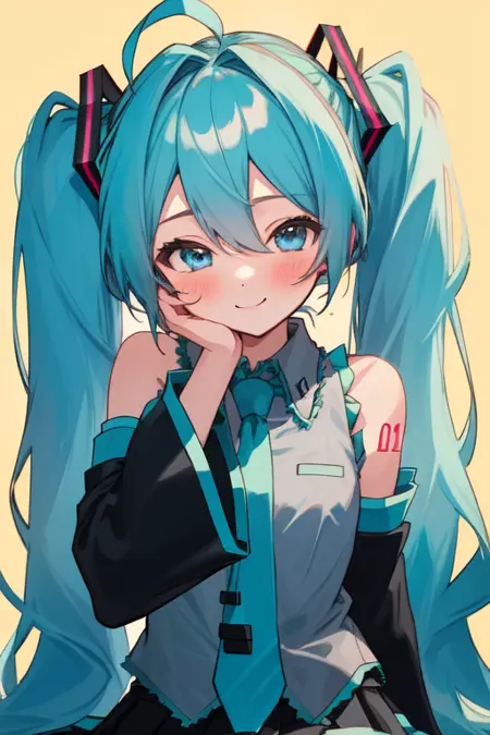 트윈테일, 파란 머리카락, 파란 눈, 매우 긴 머리카락을 추가하면 더욱 강화할 수 있습니다. 그러나 최대 0.7까지는 이 수정 없이도 작동해야 합니다.
