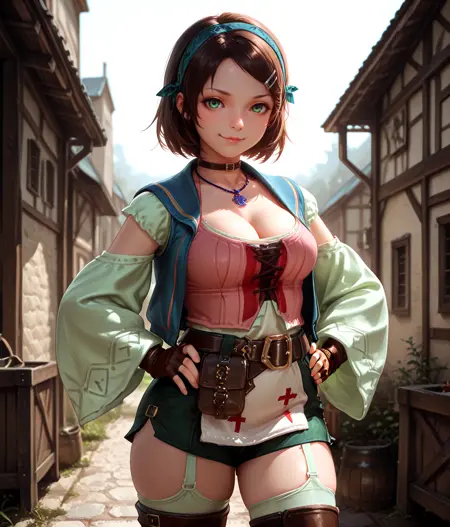 Not much Star Ocean 6 representation on the site. So I decided to make a Lora of Nina Deforges, the dedicated healer girl of Star Ocean 6: The Divine Force. Personally I always liked her look, reminds me of that one Atelier girl with the thighs that internet ever tires of. :)