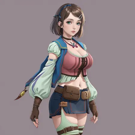 Not much Star Ocean 6 representation on the site. So I decided to make a Lora of Nina Deforges, the dedicated healer girl of Star Ocean 6: The Divine Force. Personally I always liked her look, reminds me of that one Atelier girl with the thighs that internet ever tires of. :)