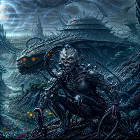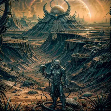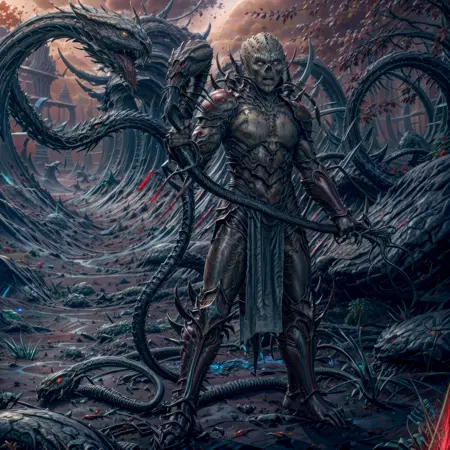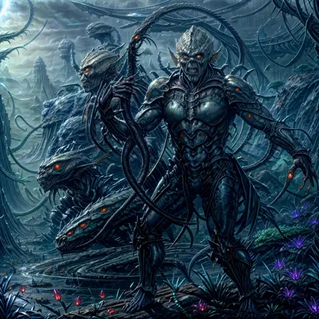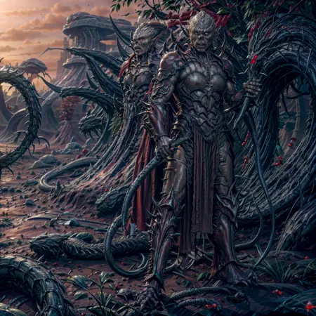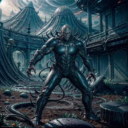 The Yuuzhan Vong were a nomadic extra-galactic sentient species that nearly destroyed the New Republic in the now-legends EU of Star Wars. This Lora is focused on creating images of the warrior caste of the species.