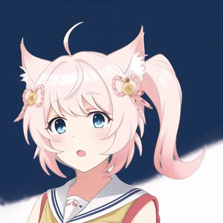 "하완", "여자아이 1명", "분홍색 헤어", "파란 눈", "옆 단발머리", "동물 귀"